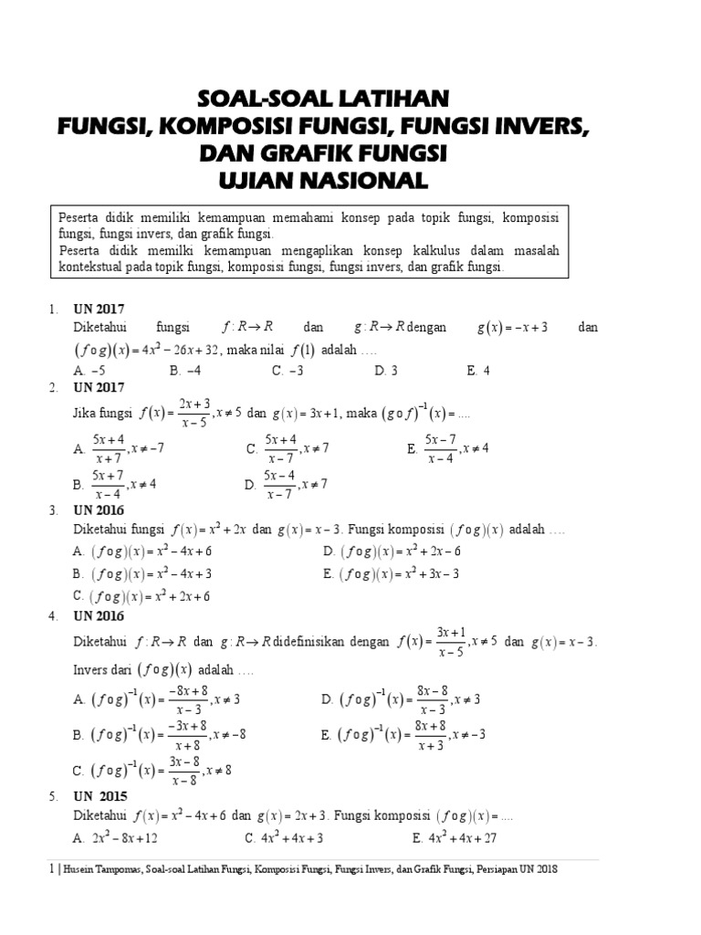 Latihan Soal Fungsi Komposisi Dan Fungsi Invers