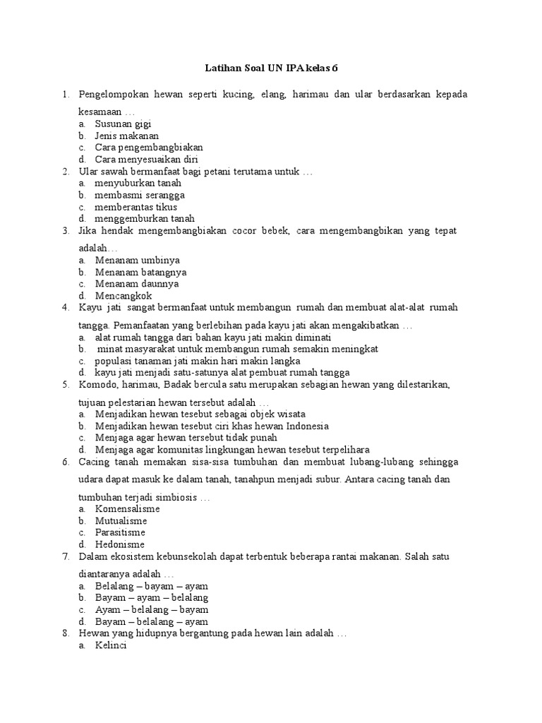 Latihan Soal Ujian Kelas 6 Ipa Ilmusosial Id