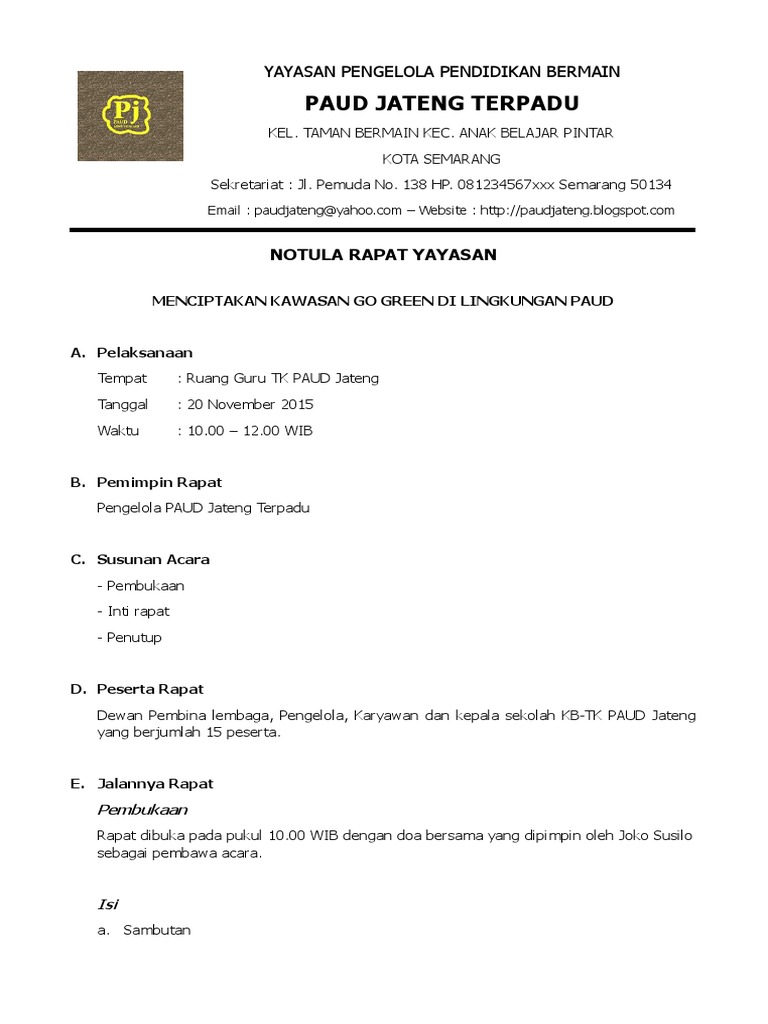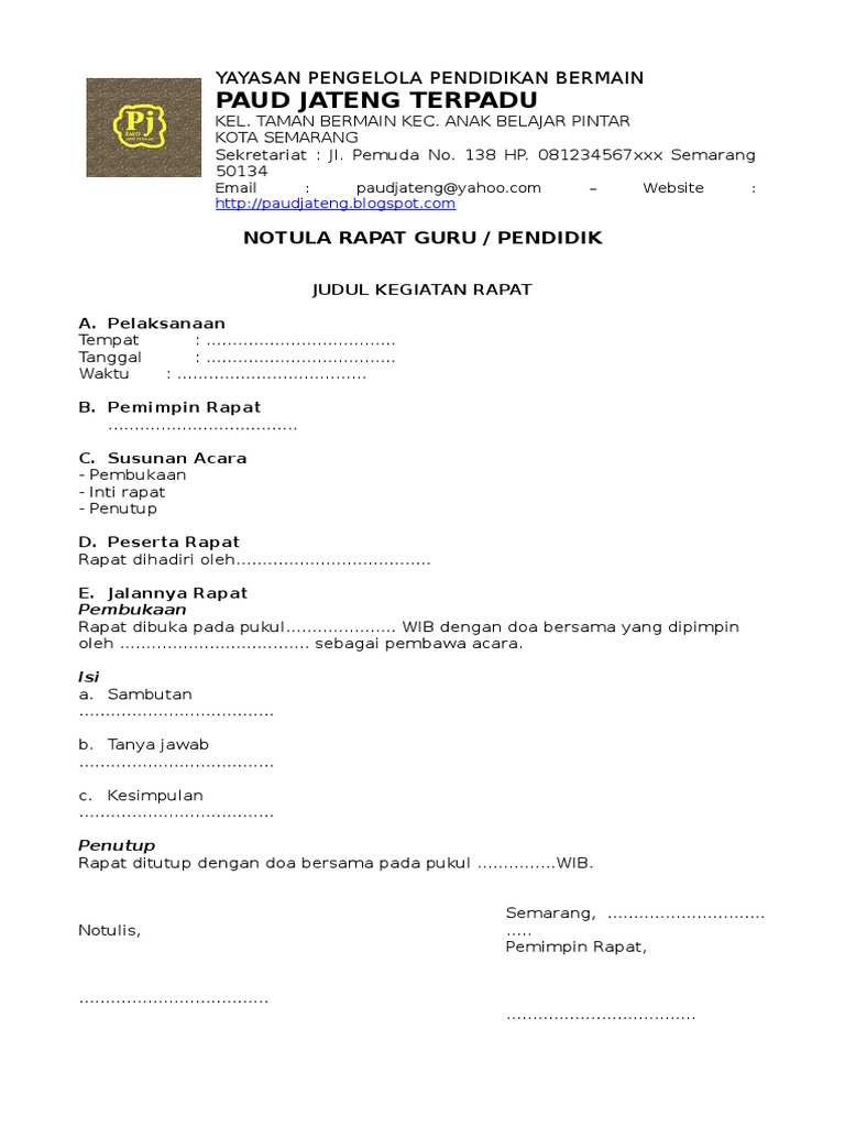 Contoh Buku Notula Rapat Yayasan Paud Terbaru Wikiedukasi Paud