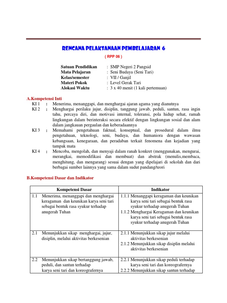 Rpp Seni Budaya Kurikulum 2013 Seni Tari Http Yasirmaster Blogspo