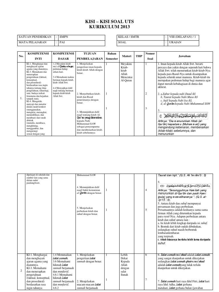 Musyawarah Guru Mata Pelajaran Pendidikan Agama Islam SMP Kabupaten Karanganyar Pembahasan Soal PAI Iman Kepada Kitab Allah. Pembaca Sekolahmuonline berikut ini kami sajikan kepada pembaca semua soal-soal latihan dan jawabannya untuk mata pelajaran Pendidikan Agama Islam dan Budi Pekerti PAIBP kelas VIII SMPMTs Bab 1. Nasihat perdagangan dan peperangan c.
